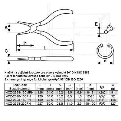 Kleště na pojistné kroužky pro otvory vyhnuté 90° 230 mm, hrot 2,3 mm