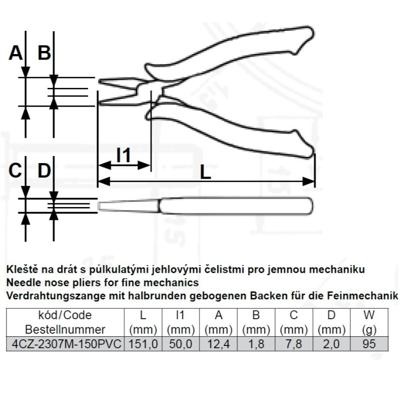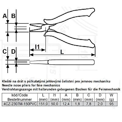 Kleště na drát s půkulatými jehlovými čelistmi 150 mm