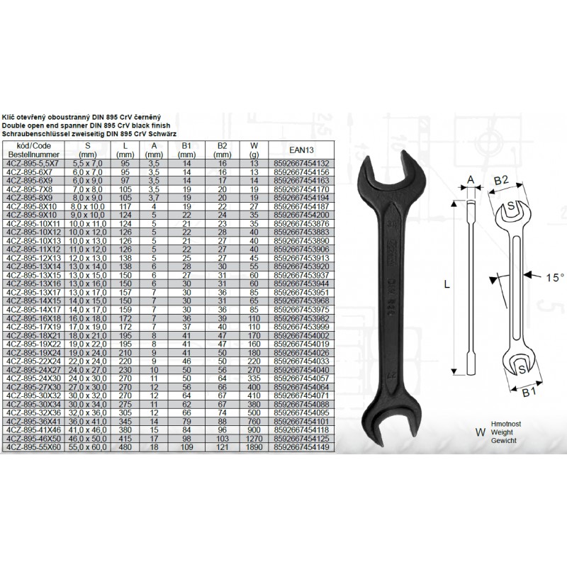 Klíč otevřený oboustranný 6 x 9 mm - černěný (DIN 895) - na závěsné kartě