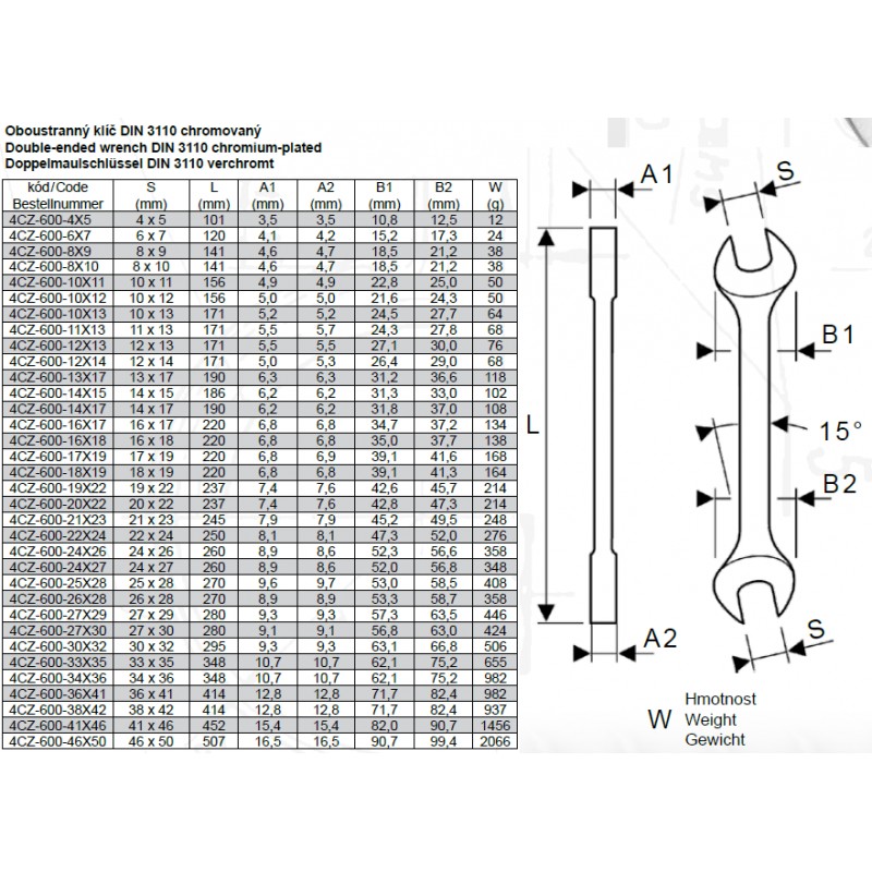 Sada klíčů 8-dílná (4x5 - 18x19) ve vinylovém pouzdře (DIN3110) 4CZech