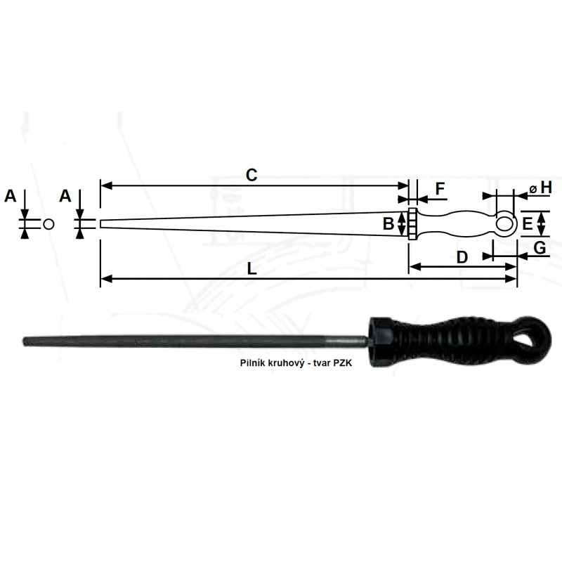 Pilník dílenský kruhový pr. 6, 150 mm, 2 - středně hrubý