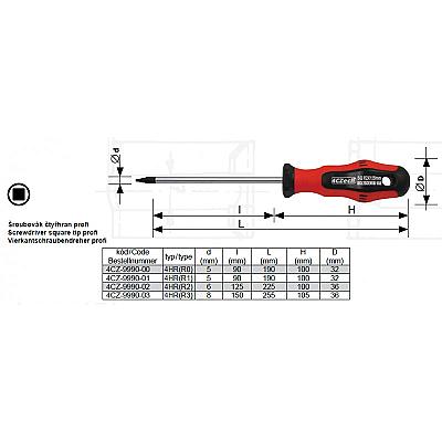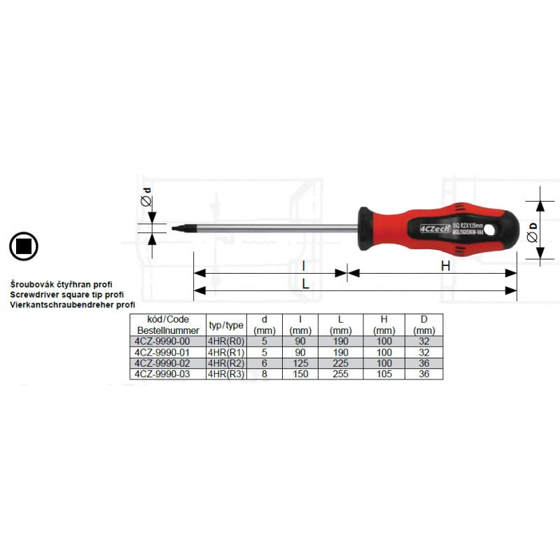 Šroubovák čtyřhran R 1 / 100 mm profi 4CZech