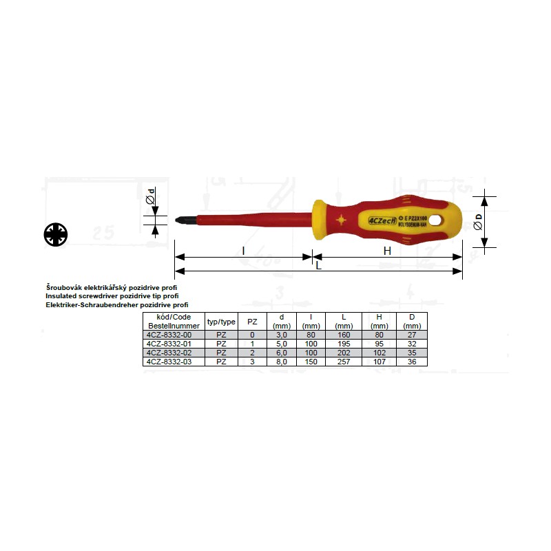 Sada elektrikářských šroubováků 1000V PL,PH,PZ - 7dílná v papírové krabici 4CZech