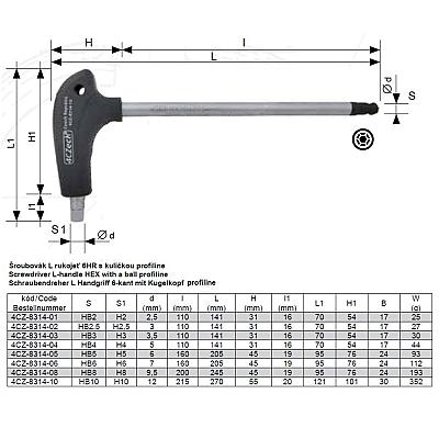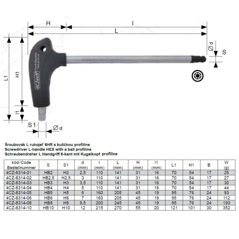| Šroubovák L rukojeť 6 HR s kuličkou 2/110 mm, 4CZech | |