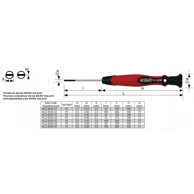 Šroubovák plochý 3,0 x 0,50 / 100 mm MICRO line profi 4CZech