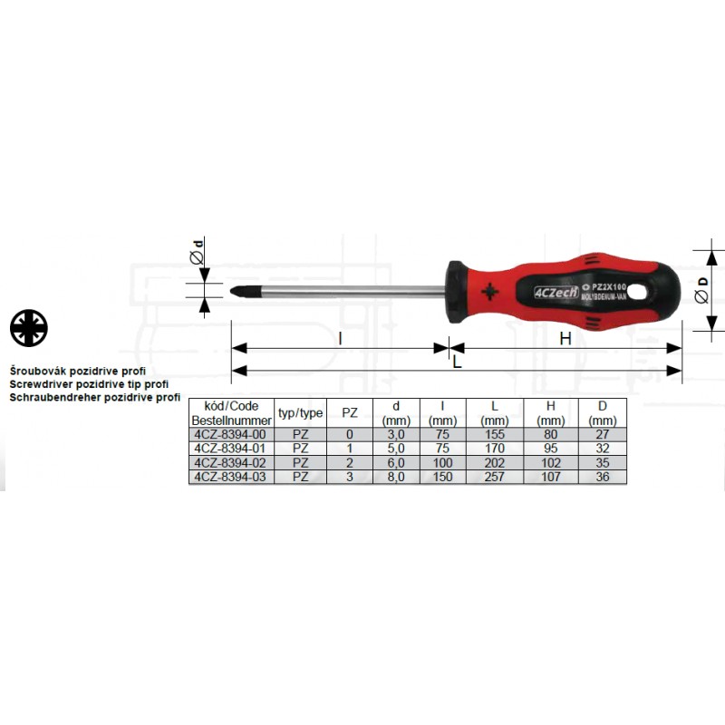 Šroubovák pozidriv PZ 0 / 75 mm profi 4CZech