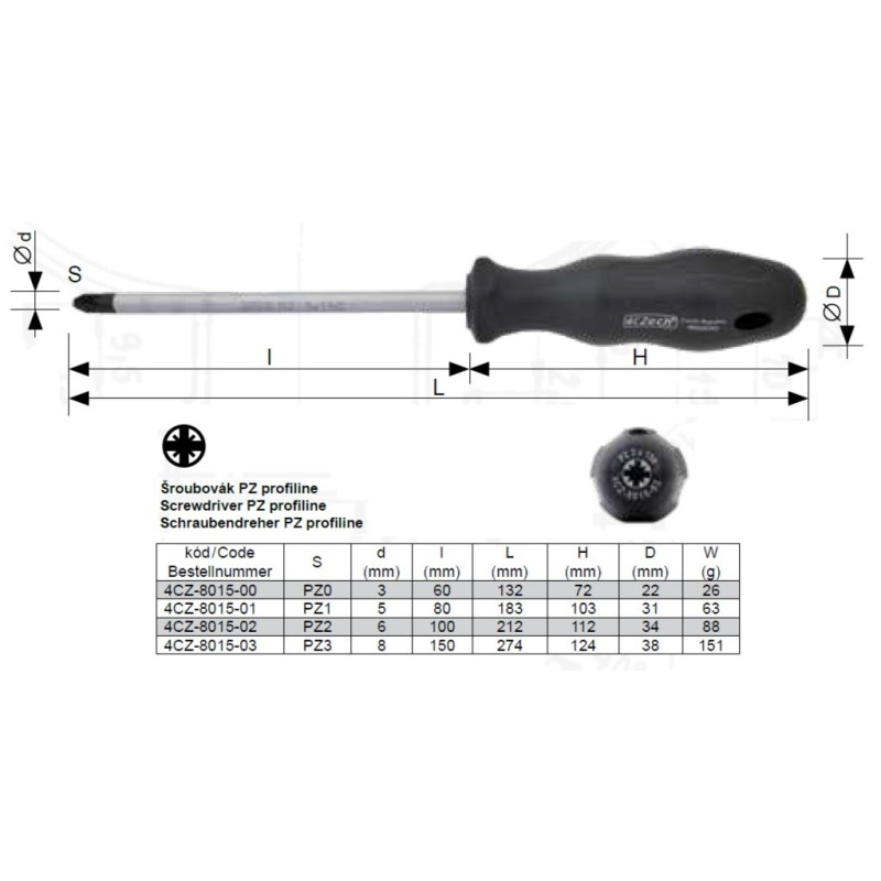 | Šroubovák PZ 0/60 mm, 4CZech | |