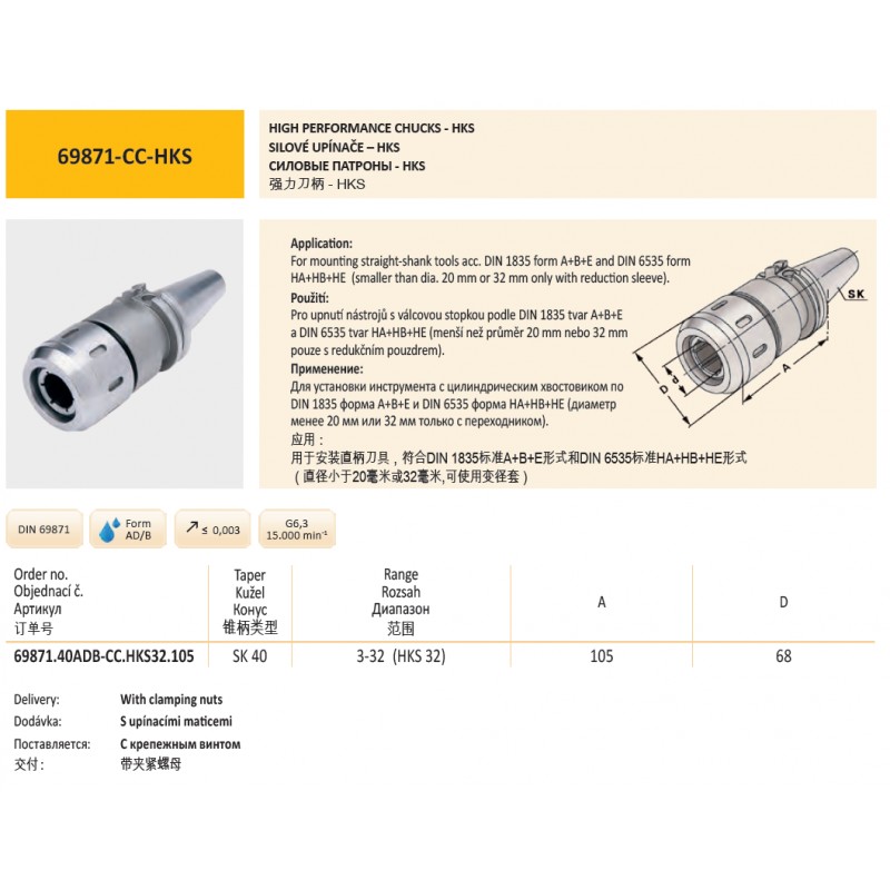 Silový upínač SK50 - HKS32, délka 90 mm