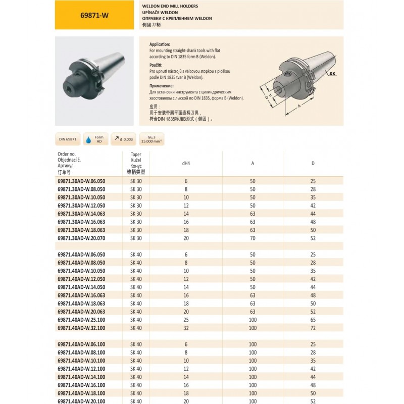 Nástrojový upínač SK40 Weldon:
