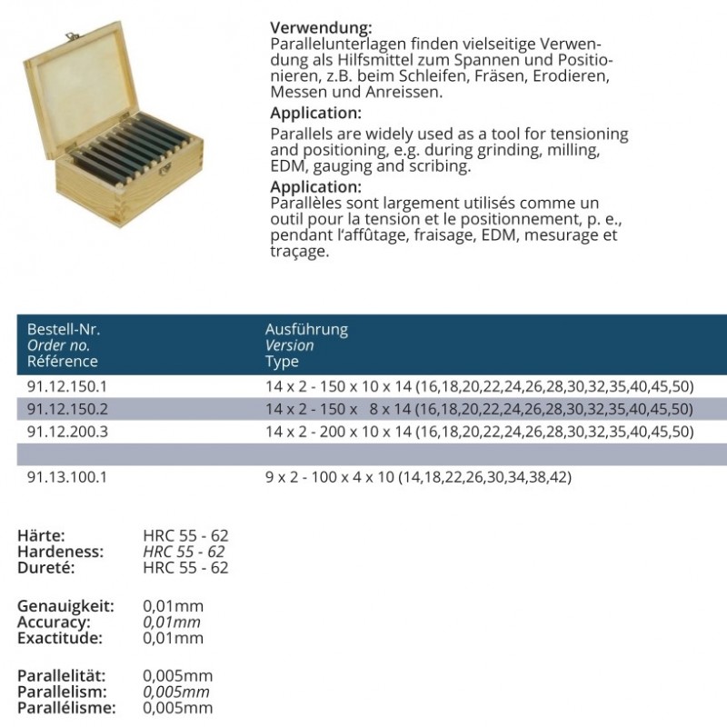 | Sada 14 páru broušených podložek tloušťka 8 mm, délka 150 mm | |