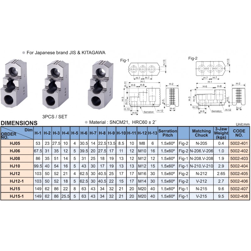 | Tvrdé čelisti HJ-10 stupňovité 3ks | |