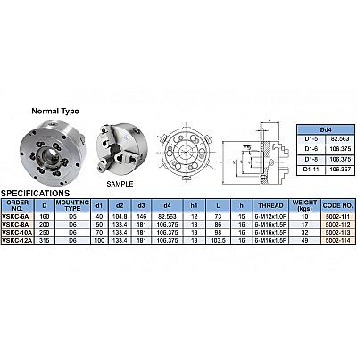 | Výkonné sklíčidlo 200 mm (8") 3-čelisťové VSKC-8A | |