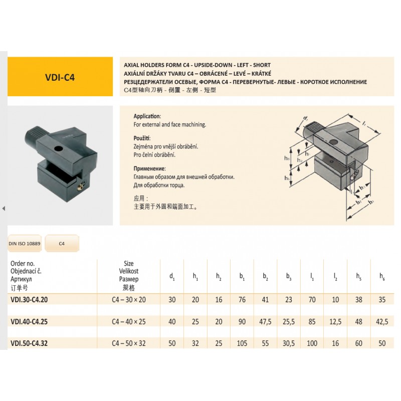 Axiální držák VDI40 tvaru C4 – levý pro 25 mm