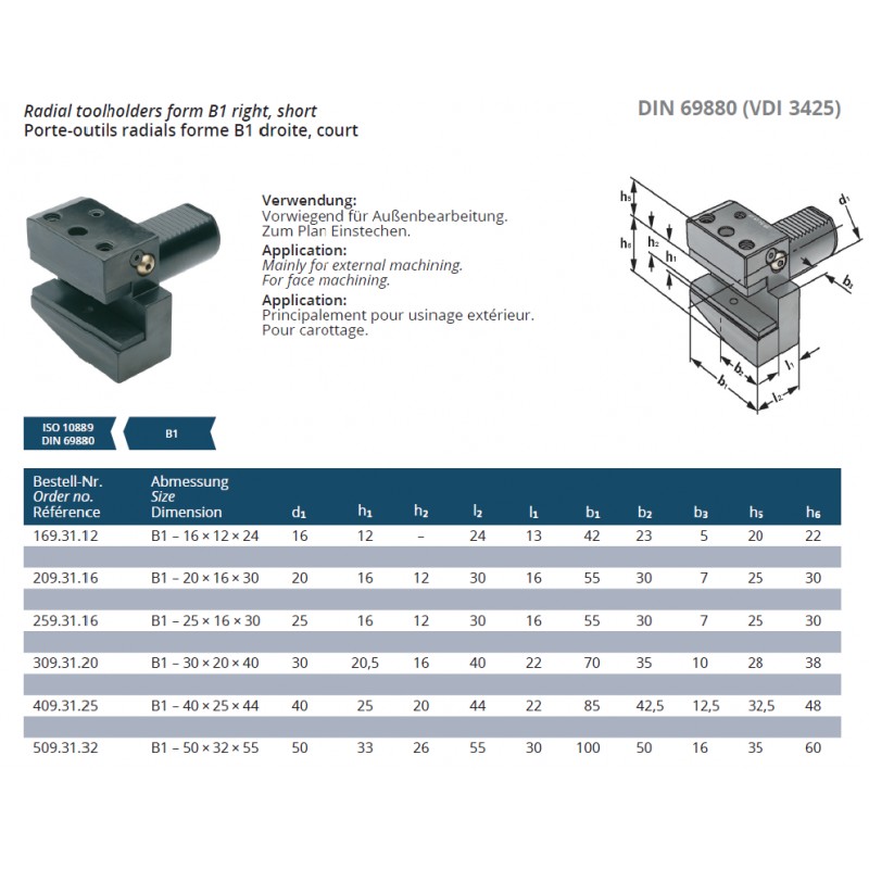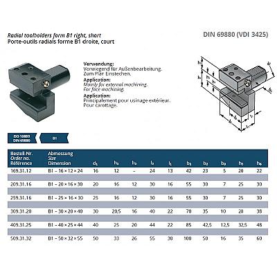 Držák VDI20 radiální pravý B3 nože 16x16 mm