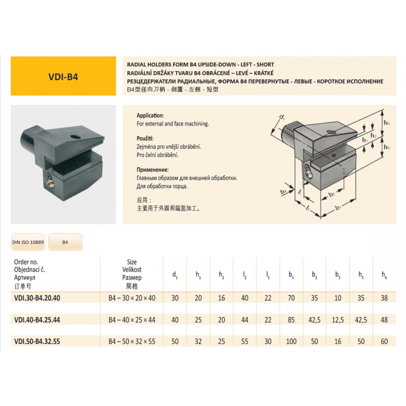 Radiální držák VDI40 tvaru B4 – levý pro 25 mm