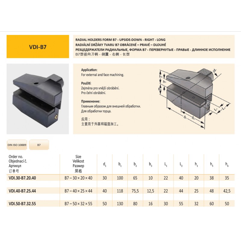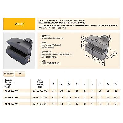 Radiální držák VDI40 tvaru B7 – pravý pro 25 mm