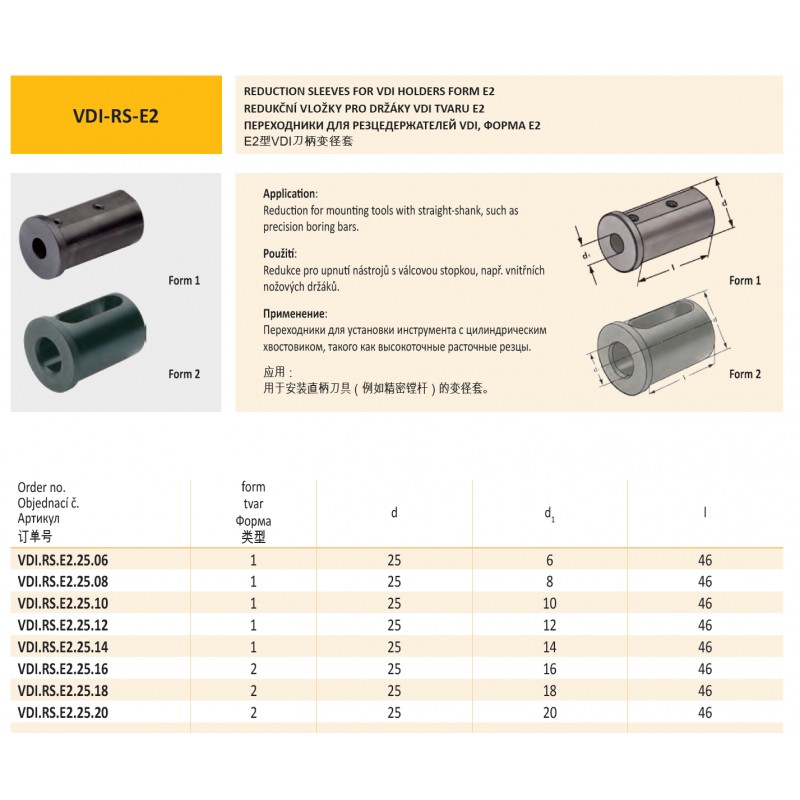 Přímý držák VDI40 tvaru E2 - 25 mm