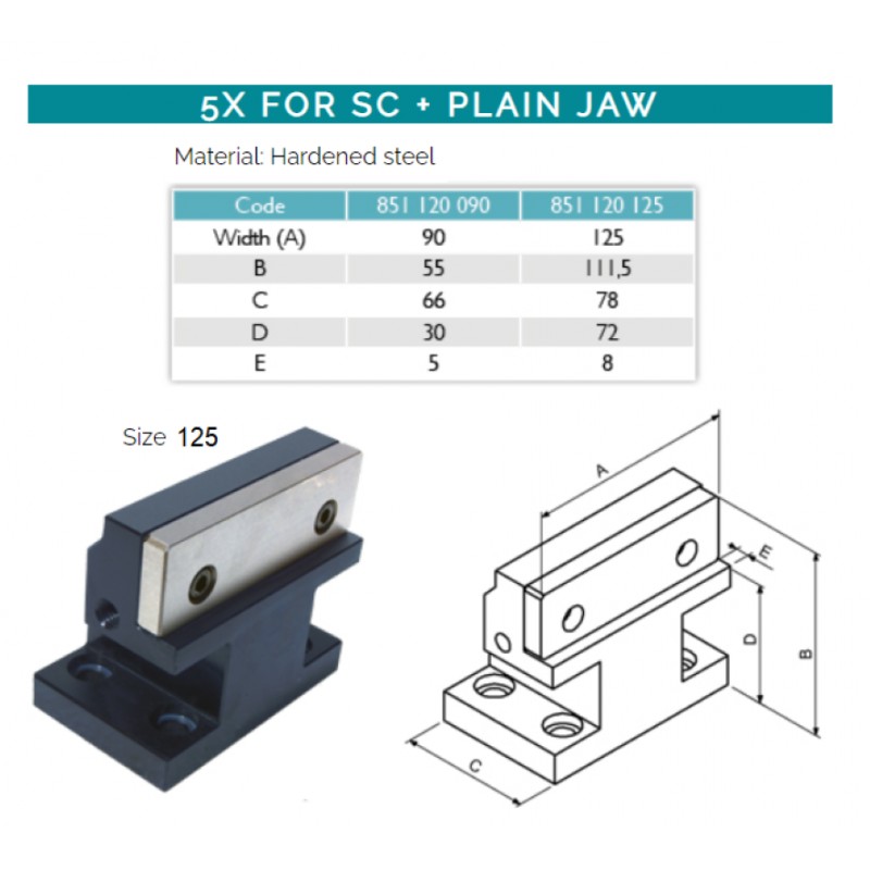 - Sada hladkých čelisti pro strojní svěráky ARNOLD SC 5X s šířkou 125 mm- Materiál čelisti: kalená ocel- Balení obsahuje 1x 5X čelist, 1x hladká čelist a upevňovací šrouby