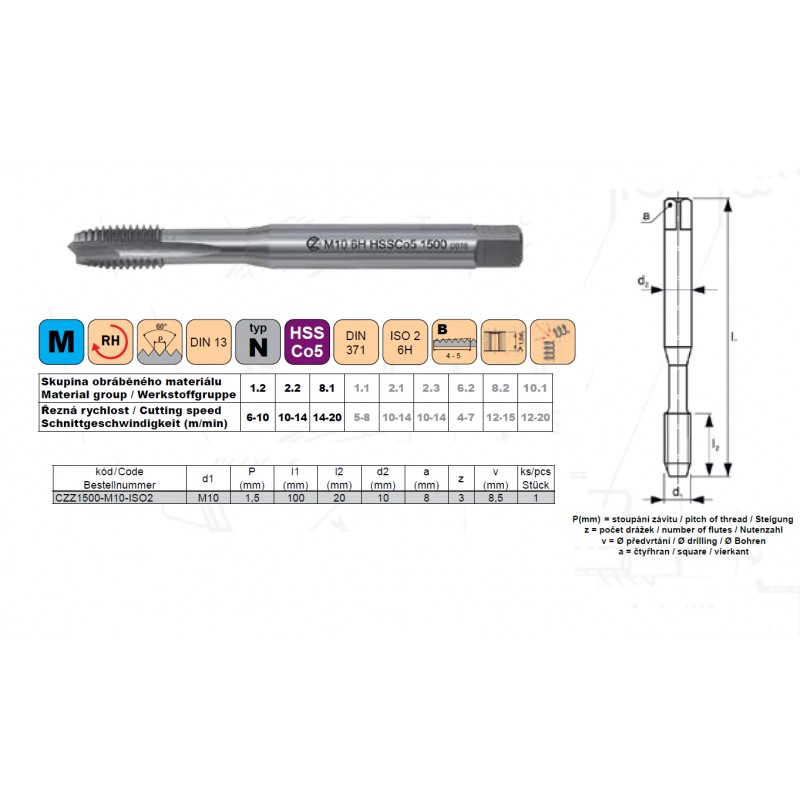 - Strojní závitník pro metrický závit s přímou drážkou a lamačem třísek