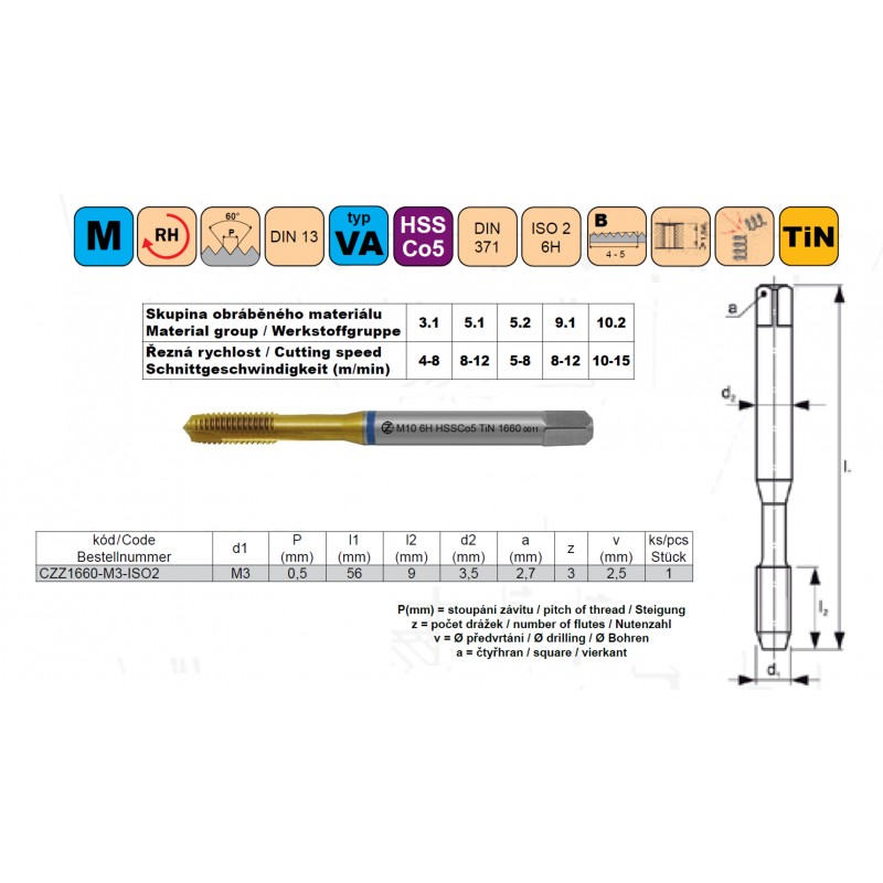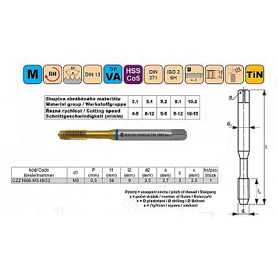 - Strojní závitník pro metrický závit s přímou drážkou a lamačem třísek