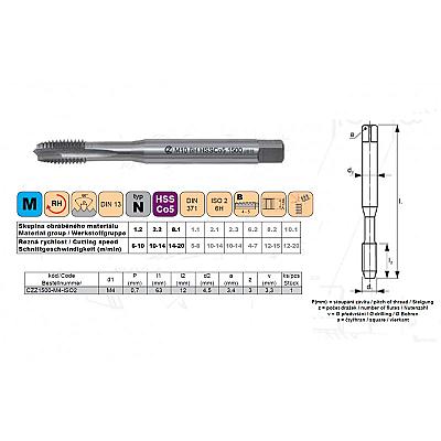 - Sada strojního závitníku M4 x 0,7 HSS+Co5 a vrtáku 3,30 mm