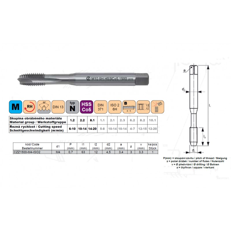 - Strojní závitník pro metrický závit s přímou drážkou a lamačem třísek