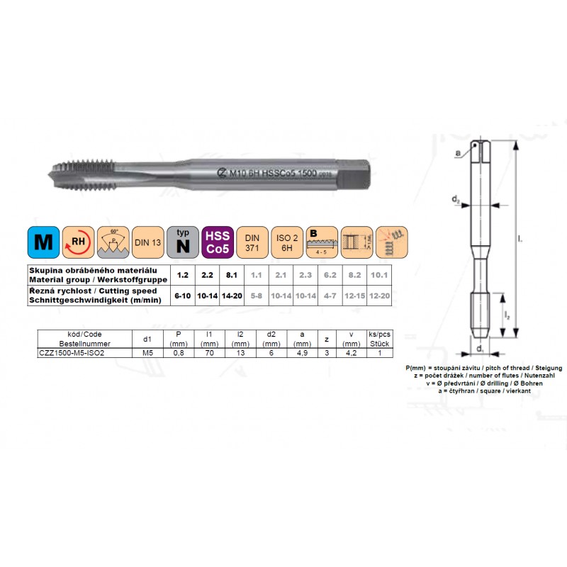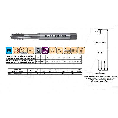 - Strojní závitník pro metrický závit s přímou drážkou a lamačem třísek
