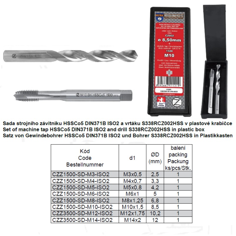 - Sada strojního závitníku M8 x 1,25 HSS+Co5 a vrtáku 6,80 mm