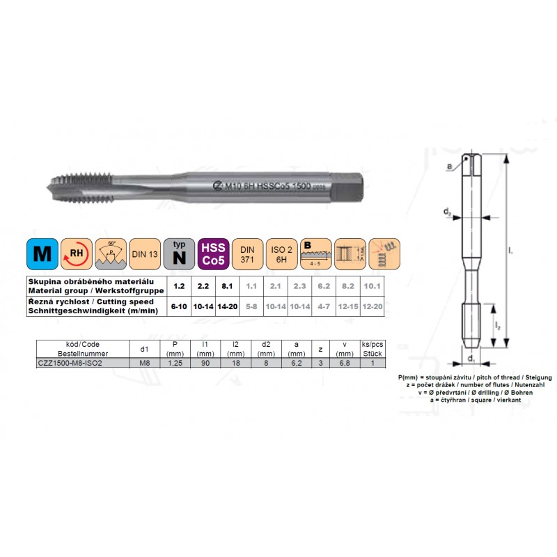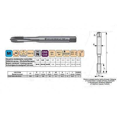 - Strojní závitník pro metrický závit s přímou drážkou a lamačem třísek