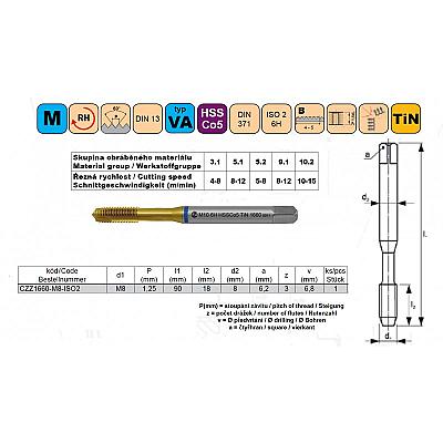 - Sada strojního závitníku M8 x 1,25 HSS a vrtáku 6,80 mm