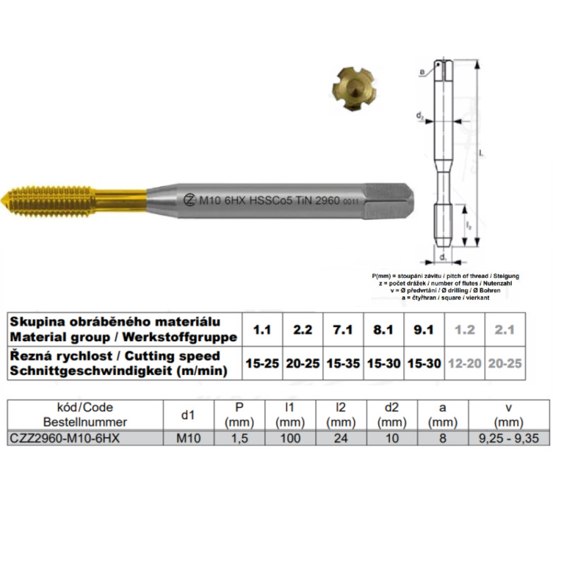 Závitník CZZ2960 (ISO 2/6HX)