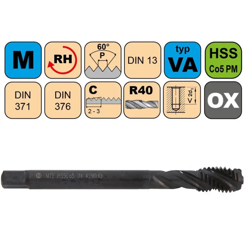 Závitník strojní M5 x 0,8 HSSCo5 + OX (ISO 2) DIN 376