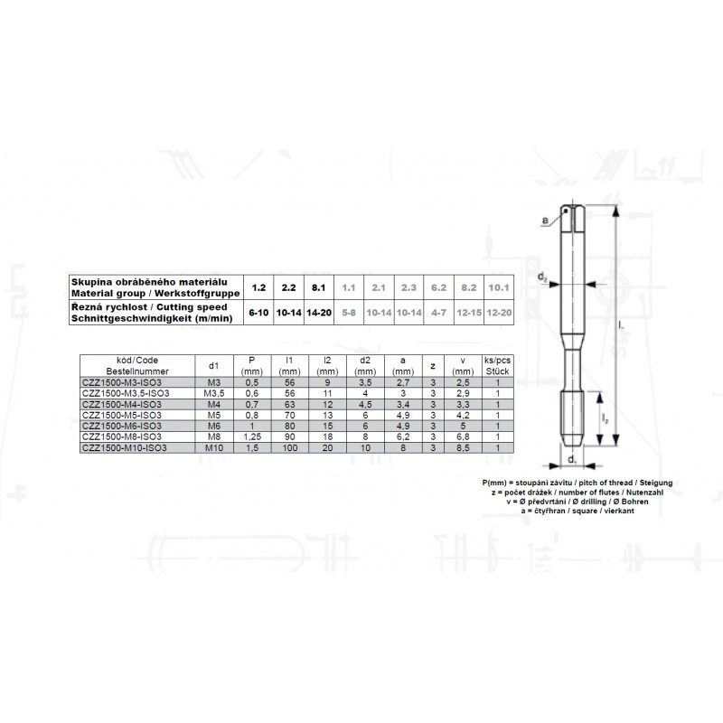 - Strojní závitníky pro metrický závit s přímou drážkou a lamačem třísek