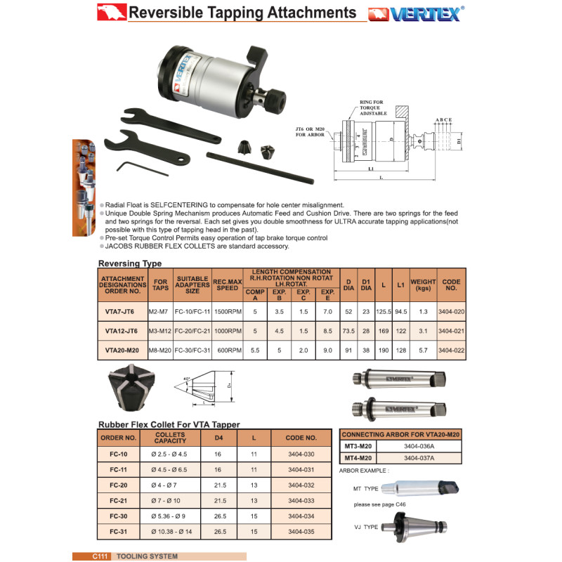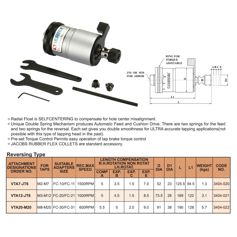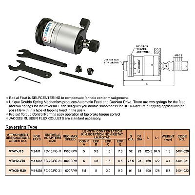 Reverzní závitovací hlava M2 - M7, VTA7-JT6